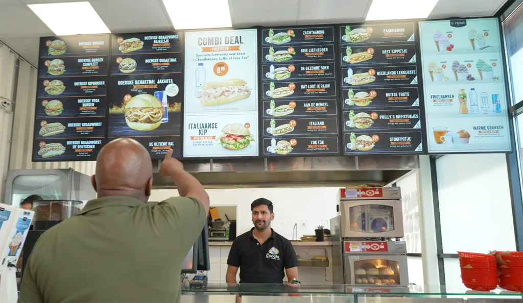 Van etalage tot lobby en kantine. Eén platform voor planning, distributie en monitoring met content die mensen zien en onthouden.