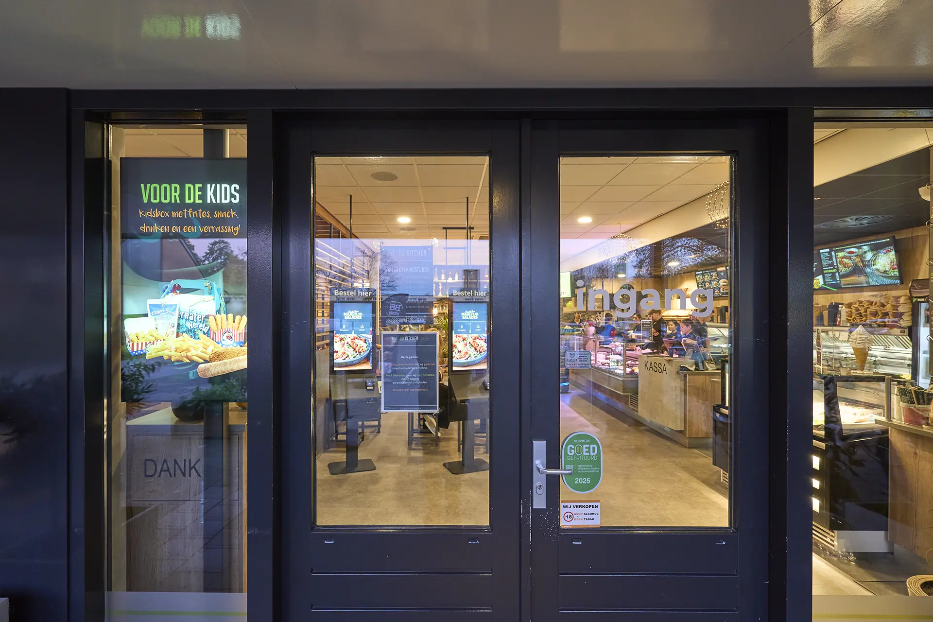 Skippify ondersteunt deze moderne foodformule met Smart Ordering kiosken en menuborden die rust brengen aan de counter en het menu helder presenteren.