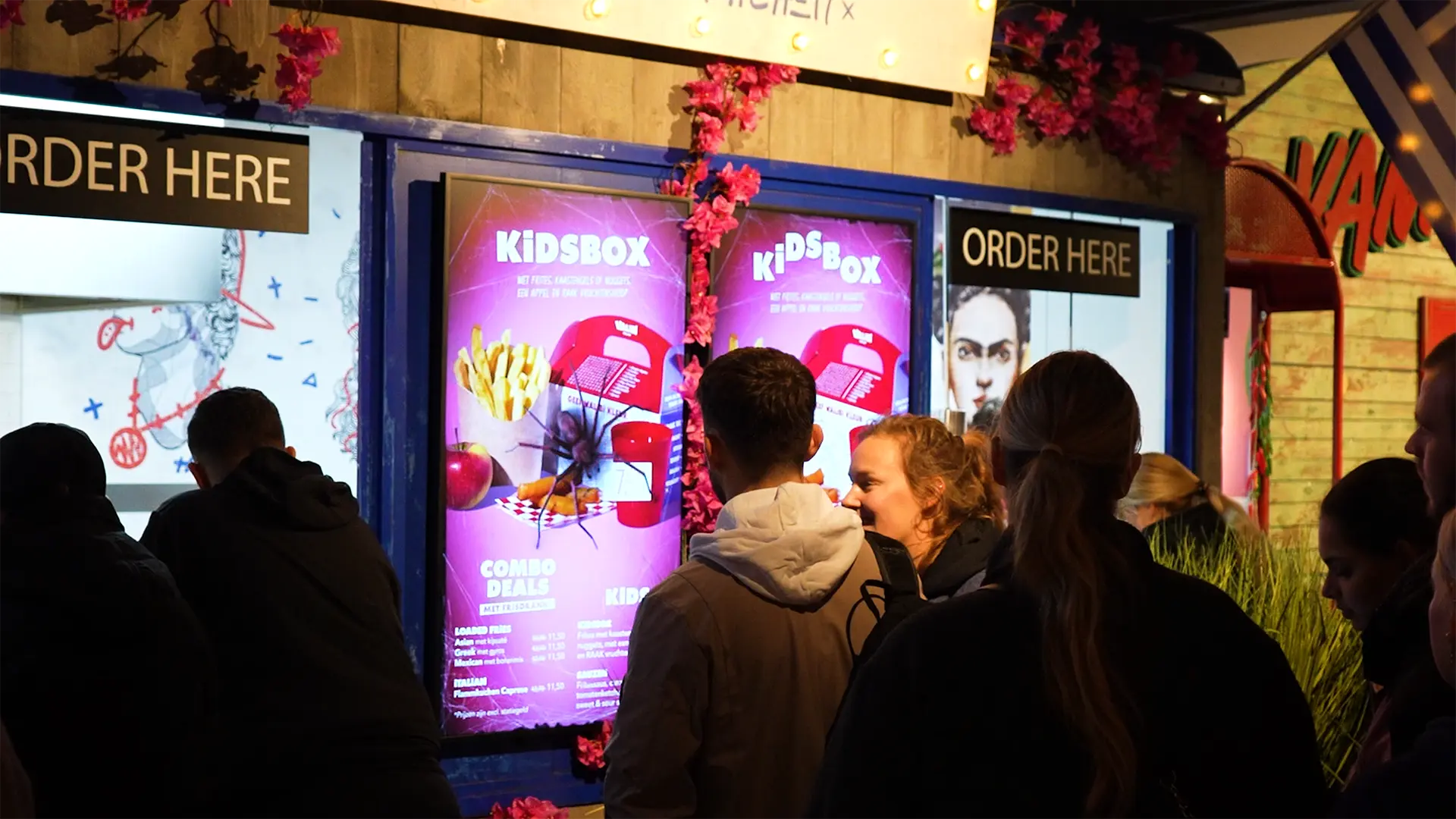 Skippify leverde een volledig parkeigen signage-ecosysteem. Alle schermen draaien op één centraal platform, met dynamische content voor menuborden en campagnes. Tijdens thema’s zoals Fright Nights schakelt het hele netwerk in één keer naar het nieuwe thema. De visuele content komt uit onze inhouse studio en sluit naadloos aan op de Walibi-stijl.