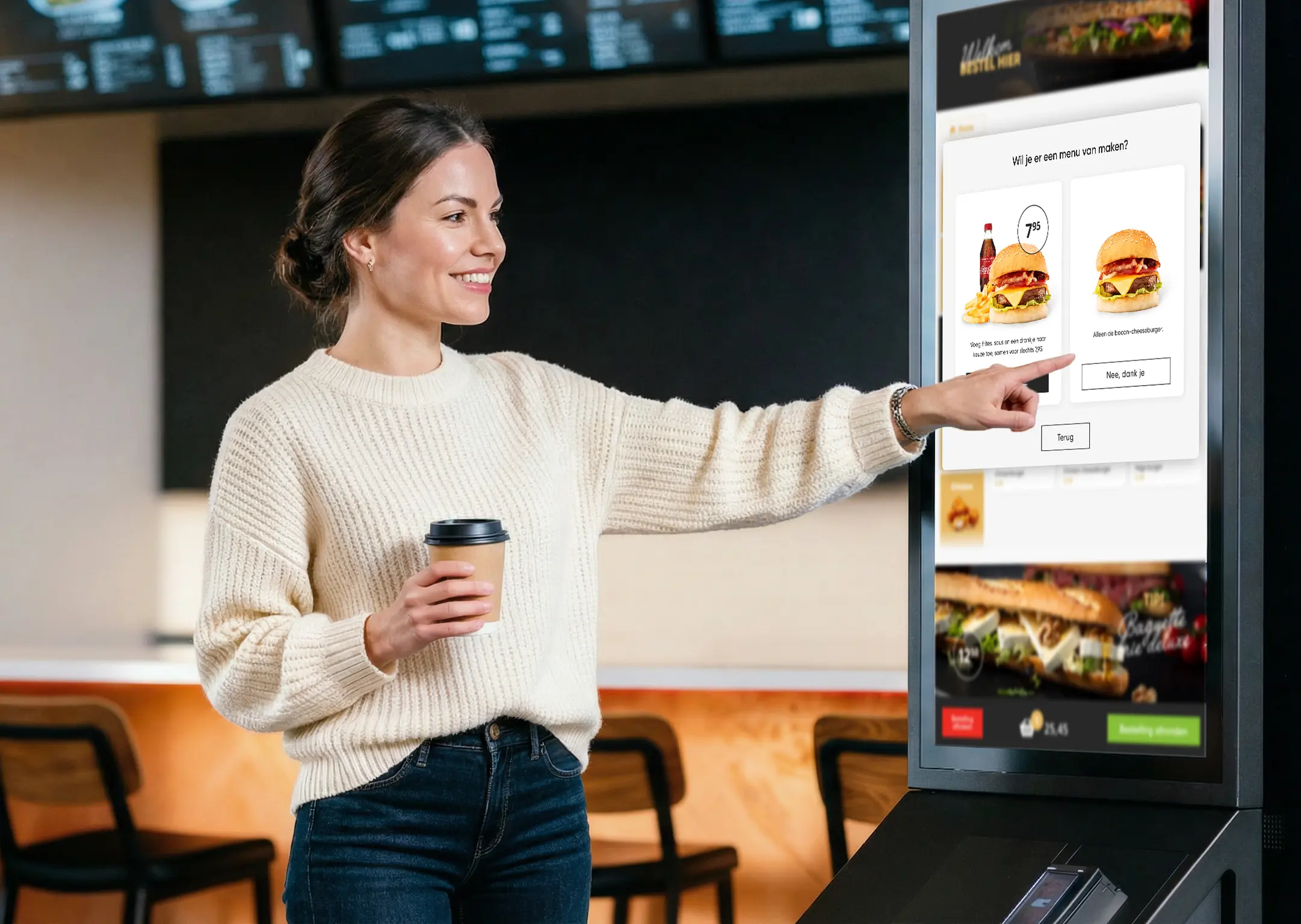 Onze orderkiosken helpen gasten sneller kiezen, terwijl jij meer verkoopt met minder druk op de counter. De interface is intuïtief, de koppelingen zijn direct, en elke bestelling loopt automatisch door naar keuken, kassa en voorraad.